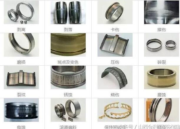 轴承损伤方式分类见下图,根据图片中显示的主要特征判断其损伤形式。轴承损伤照片及描述