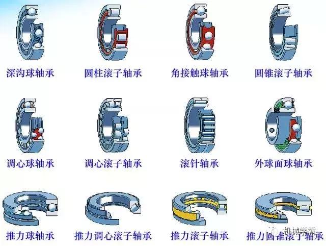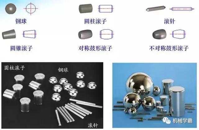 滚动体也有很多不同的种类,如下图。