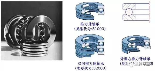(9)推力球轴承类型代号为5。这种轴承在工作时必须有一定的轴向载荷,避免钢球在滚道中滑动。在高速时离心力较大,钢球与保持架磨损,发热严重,使轴承的寿命降低,所以这种轴承的极限转速较低。