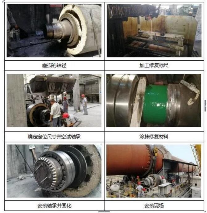 问题分析:水泥行业回转窑轮带和托轮材质的热工性较差,同时长期处于高温、重负荷下运行,加之工作环境较为恶劣,一般发生点蚀性腐蚀剥落较多或是疲劳性的严重损坏,辊面一旦出现凹坑,面与面之间的受力就会失去平衡;就会对轴承座带来外力,温度增高,时间长了就会造成轴承位磨损。托辊和轮带接触即为产生很大的赫芝应力,这种应力是局部的高应力;