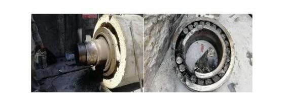 磨损情况:轴承位单边磨损量在3mm左右,轴承内圈断裂,设备被迫停机。