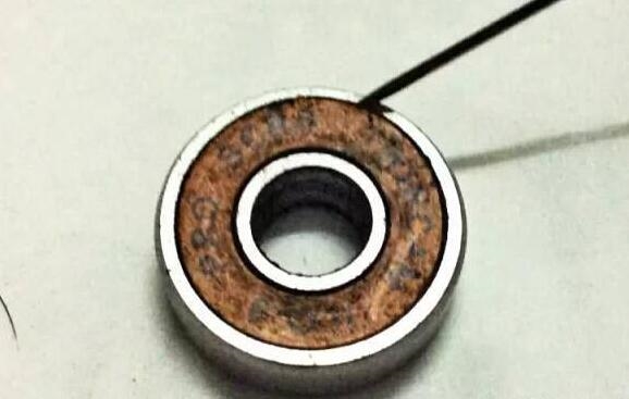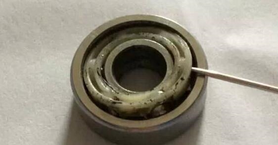 就像这样,去除防尘盖后,我们翻转轴承,从背后下手。