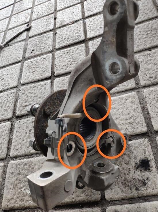 有过更换别克系列车型的师傅都知道,此款轴承设计的很合理,只需要拆下上图所表示轴承后方的三颗螺丝就可以轻而易举的拿下。然而因为球笼和轴承啮合的太紧不能被取下来,导致多拆了很多东西。值得庆幸的是车主很是理解我们的做法,不仅不为耽误他的时间生气,还为我们点赞鼓励加油。