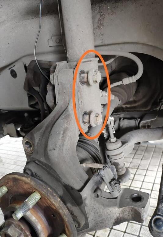 上图圆圈内便是羊角连接减震的螺丝,由于螺丝本身就有定位的作用所以不需要做四轮定位,角度参数不会发生改变。
