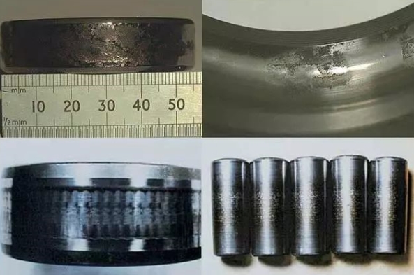 接触疲劳失效常见的形式是接触疲劳剥落。接触疲劳剥落发生在轴承工作表面,往往伴随着疲劳裂纹,首先从接触表面以下最大交变切应力处产生,然后扩展到表面形成不同的剥落形状,如点状为点蚀或麻点剥落,剥落成小片状的称浅层剥落。由于剥落面的逐渐扩大,会慢慢向深层扩展,形成深层剥落。深层剥落是接触疲劳失效的疲劳源。