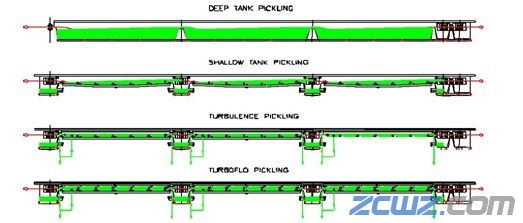c 紊流酸洗线:在每个酸洗槽内仅在带钢上面仅有两个紊流区域。然而在各酸洗槽的出口需要较大能源进行密封。
