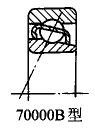 角接触球轴承结构与特性结构简图、代号名称一般特性其他特性 锁口在外圈的单列角接触球轴承1.承载能力较大,额定动载荷比1~1.42.可以同时承受径向载荷和轴向载荷,也可承受纯轴向载荷,接触角越大,轴向承载能力越大3.只能承受一个方向的轴向载荷,在承受径向载荷时,会引起附加轴向力,一般成对使用,使轴向力相平衡4.极限转速高70000Cα= 15°70000ACα= 25°70000Bα= 40° 锁口在内圈的单列角接触球轴承 成对安装的角接触球轴承(串联排列)1.能承受较大的单向轴向载荷,承载能力随接触角的增大而增加2.能限制轴或外壳在一个方向上的轴向位移3.极限转速中用于承受较大的轴向载荷 成对安装的角接触球轴承(背对背排列)1.能承受双向轴向载荷,承载能力随接触角的增大而增加2.通过预紧可限制轴或外壳的轴向位移3.通过预紧可增加轴承的刚度和旋转精度4.极限转速中有较大的抗弯刚支承度,适合于悬臂轴的支承 成对安装的角接触球轴承(面对面排列) 外圈可分离型角接触球轴承1.承载能力较大2.能承受以径向载荷为主的径、轴向联合载荷3.能限制轴和外壳的单向轴向位移4.极限转速高内外圈可分别安装,适用于安装条件受限制的部位,一般成对使用 内圈可分离型角接触球轴承 双列角接触球轴承1.承载能力大2.能承受双向轴向载荷,还可以承受一定的倾覆力矩3.具有成对安装的背对背轴承的特点,但宽度较窄4.极限转速高接触角α=30°,刚度较好回到顶部