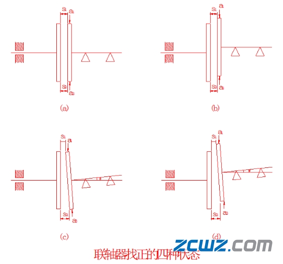 注:如果联轴器处于后三种状态时,不正确,需要调整,直至获得第一种正确的状态。