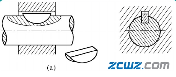 结构特点一是轴上键槽是用半径与键尺寸相同的外圆盘形铣刀加工的。