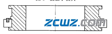 高垫块的高度为47mm,矮垫块的高度为28.3mm.,利用高、矮垫块分别支撑偏心轴承的外圈,矮垫块没有接触外圈。第一偏心套高度为高垫块的高度和外圈挡边高度之和。因第一列滚针与外圈挡边只接触2mm,滚针直径4.5mm,给装滚针带来了难度,利用套筒来装滚针,套简厚度为7mm,为装人滚针在套筒上铣了一个通槽,槽开口处的尺寸为5.5mm,大于滚针直径。从开口装人滚针,解决了滚针立不住的问题,如图6。这样解决了装第一列滚针的难题,装配过程如图2所示。撇掉高垫块,变为矮垫块支撑外圈,利用套筒开槽来装第二列滚针,这样完成了外圈、两列滚针与第- -偏心套的装配过程,装配过程如图3所示。
