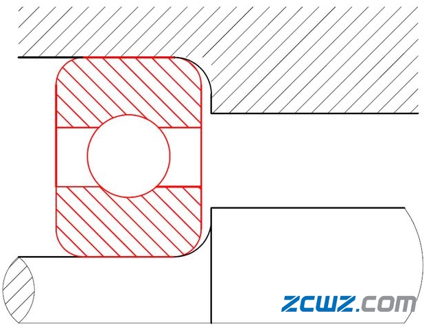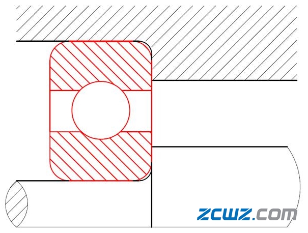 如上图所示当轴承倒角小于轴承箱与轴肩倒角时,无法装配到位,容易造成轴承倒角处应力集中,装配倾斜,其他配合零件无法匹配等一系列问题。